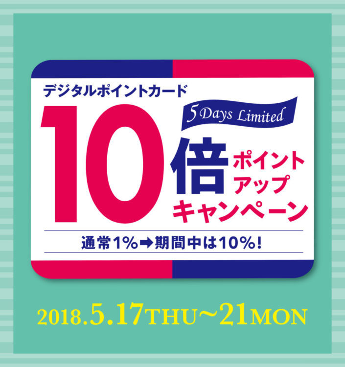 プレスリリース 【マロニエゲート銀座1】5月17日(木)~21日(月)『デジタルポイントカード10倍ポイントアップキャンペーン』開催! by ファショコン通信 • 2018年5月10日 • 0 Comments 銀座の商業施設「マロニエゲート銀座1」(東京都中央区銀座2-2-14 運営会社:三菱地所プロパティマネジメント株式会社)では、5月17日(木)~21日(月)の期間中『マロニエゲート銀座 デジタルポイントカード10倍ポイン… Read more →