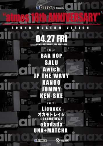 プレスリリース atmosが仕掛ける”スニーカーカルチャー”と”音楽”が融合したパーティー『atmos presents “atmos 18th ANNIVERSARY “』 by ファショコン通信 • 2018年4月26日 • 0 Comments 『atmos presents “atmos 18th ANNIVERSARY “』 「東京ストリートカルチャー」を一夜限定のパーティーに凝縮させたスペシャルイベント。 Read more →