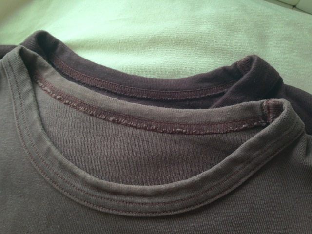 最後に10年着用したsol-designのカットソーをご紹介する。(数回しか洗濯していないものを下に置いて参考にした)